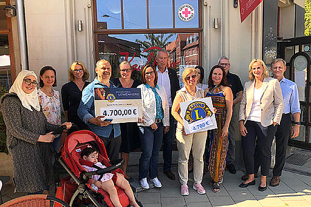 Der Sprachunterricht für geflüchtete Menschen in der DRK-KaufBar kann weitergeführt werden. Für die Fortsetzung des Projekts „Sprachbrücke“ der DRK Sprungbrett gGmbH, einer Tochter des DRK-Kreisverbandes Braunschweig-Salzgitter e.V., übergaben jetzt die beiden Braunschweiger Lions-Clubs Dankwarderode und Löwenherz jeweils Spenden in Höhe von 4.700 Euro, insgesamt als 9.400 Euro, an die Sprungbrett-Leiterin Heike Blümel.