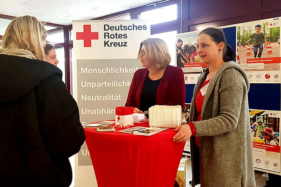 Das DRK war sowohl im Kulturzentrum Brunsviga beim Speed-Dating „Praxis macht Schule“ präsent als auch einen Tag später in Salzgitter-Fredenberg bei der dortigen Info-Börse in der Berufsbildenden Schule.