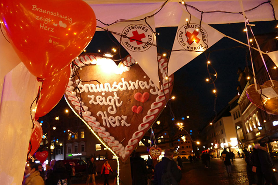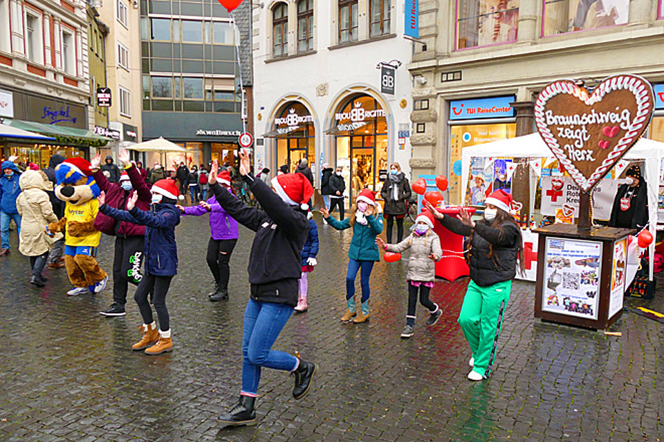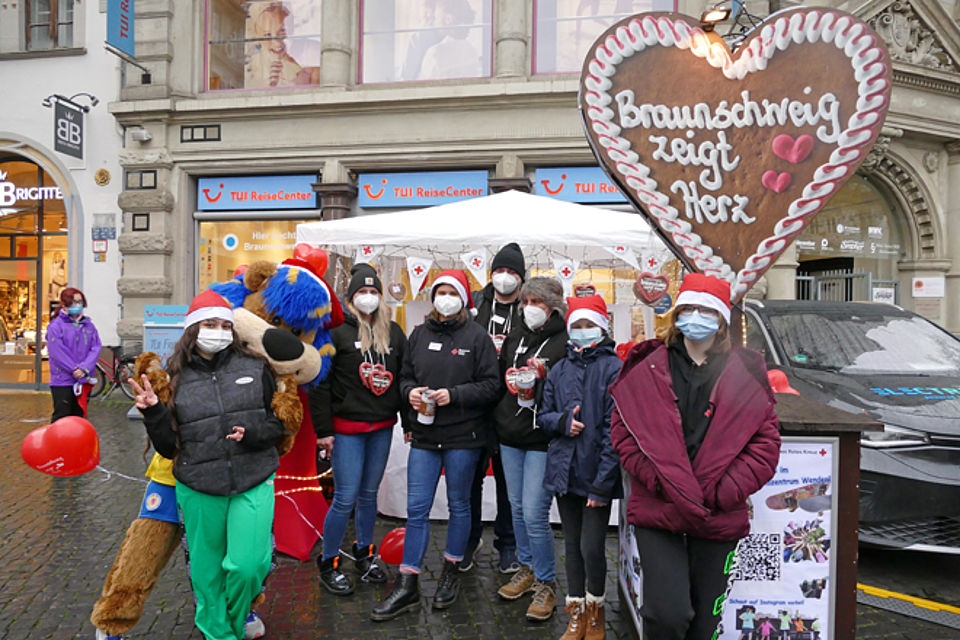 Das Team aus dem DRK-Kinder- und Jugendzentrum Wenden inklusive Kindern und Jugendlichen sowie Freunde des „Juze“ hatten am Samstag vor dem ersten Advent 2021 während der Aktion „Braunschweig zeigt Herz“ einen Stand auf dem Kohlmarkt und haben dort Spenden für die Kinder- und Jugendarbeit der Wohlfahrtsverbände gesammelt. Spender erhielten im Gegenzug vom Braunschweiger Schaustellerverband gestiftete Lebkuchenherzen, Herzluftballons oder Erfrischungsgetränke.
