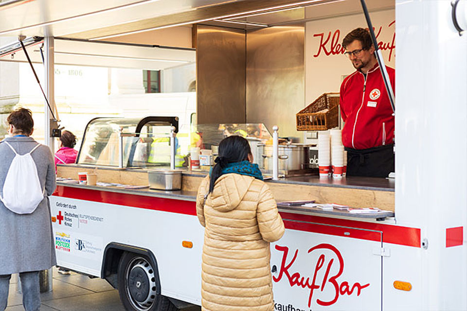 Im Rahmen der Veranstaltung konnten sich die Teilnehmer*innen an unserem DRK-Food-Truck (die „Kleine KaufBar“), gratis mit heißem Tee und wärmender Karotten-Ingwer-Suppe stärken. Es freut uns besonders, dass Mitarbeiter*innen aus unserem Beratungsstellen aus dem Kreisverband sowie von unserer Tochtergesellschaft, der DRK-Sprungbrett gGmbH, an der Kundgebung teilgenommen haben.