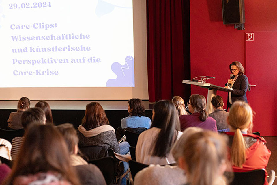 Nicole Kumpis hatte die Ehre, die Abschlussveranstaltung im Roten Saal zu eröffnen und lenkte dabei erneut die Aufmerksamkeit auf den akuten Sorgenotstand in unserer Gesellschaft. In ihrer Position als Vorständin beim DRK erlebt sie die vielfältigen und beeindruckenden Facetten der Care-Arbeit, sei es in den Kindertagesstätten, der Betreuung von Schulkindern, im Rettungsdienst, den Beratungsstellen sowie in der stationären und ambulanten Pflege.