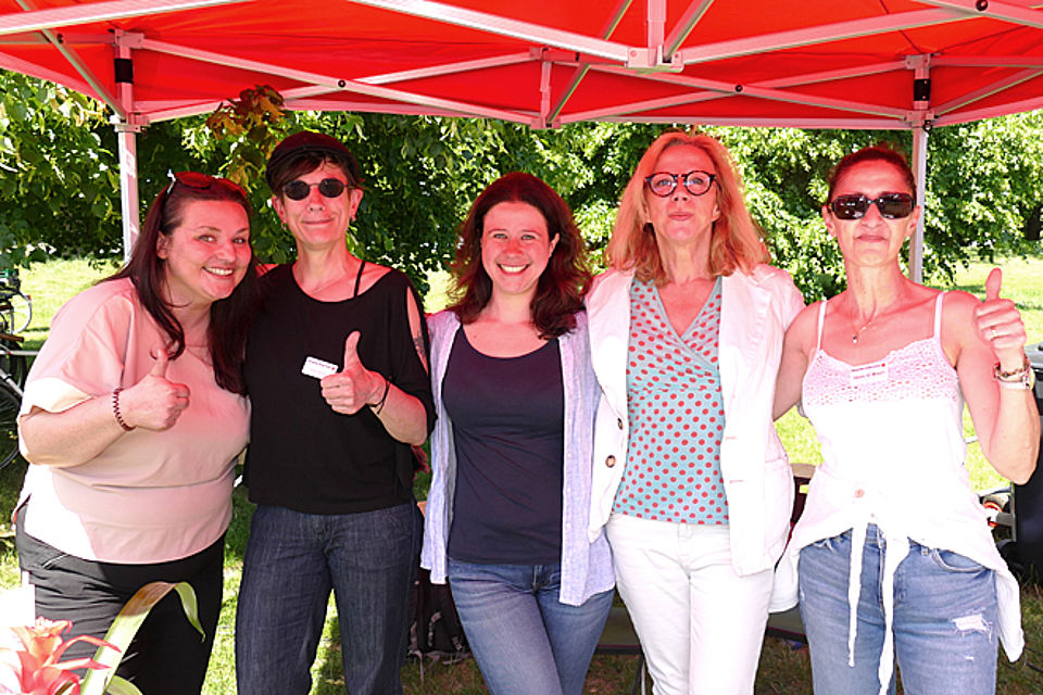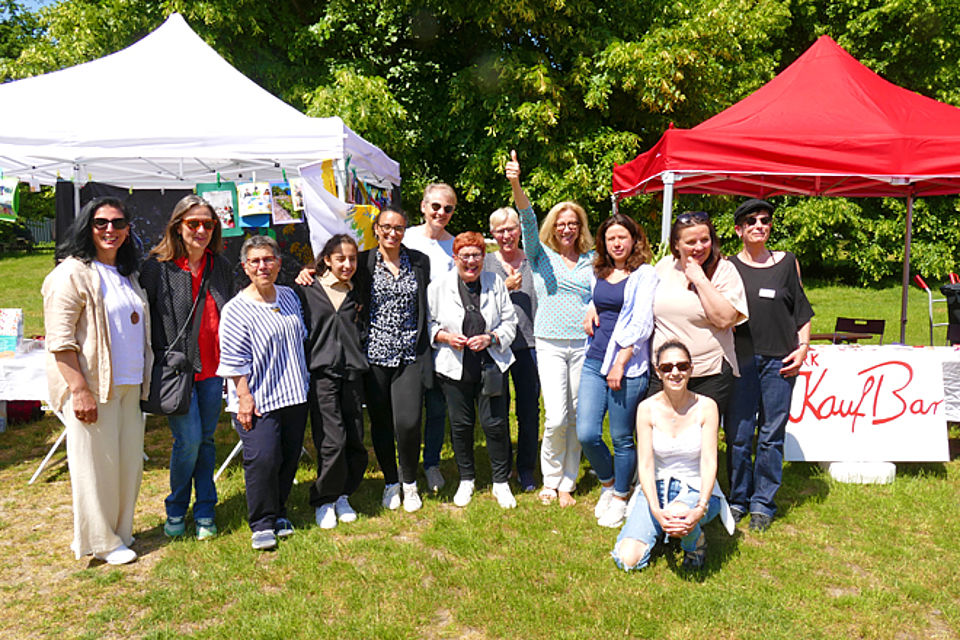 Die DRK-KaufBar und frauenBUNT hatten im Bürgerpark nahe der VW-Halle Infostände aufgebaut, das Rote Kreuz war auch mit seinem mobilen
