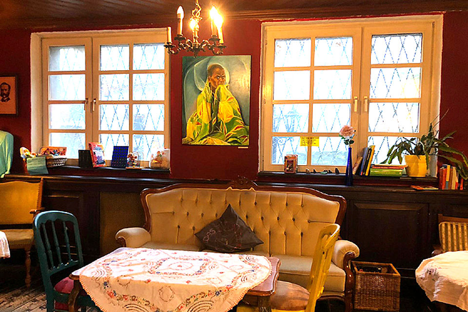 Auch DRK-Kreisverbandsvorstand Carola Mette bedankte sich für das Bildergeschenk, „das perfekt in die KaufBar passt“, meinte sie. Dort finden und fanden immer wieder Veranstaltungen mit und für geflüchtete Menschen statt, interkulturelle Begegnungen bilden in dem soziokulturellen Zentrum einen Schwerpunkt.