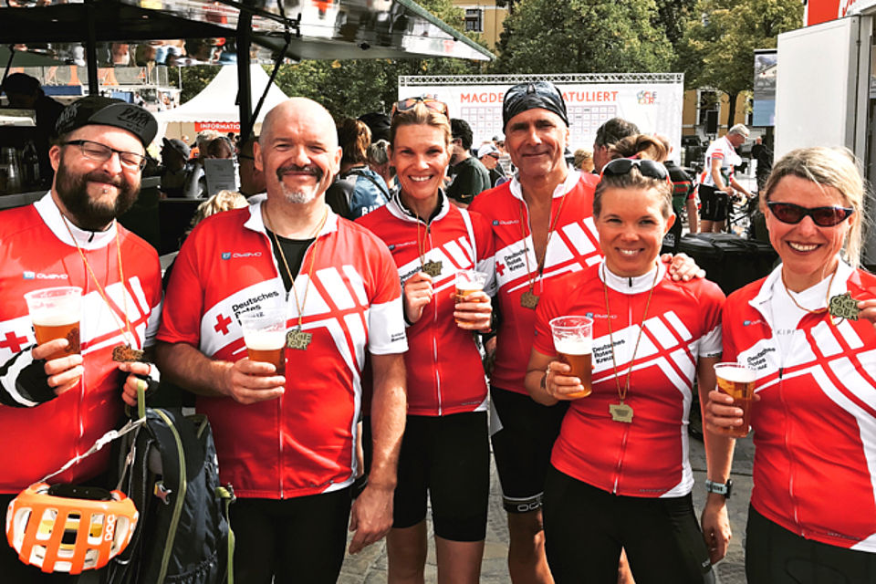 Die Teilnahme des DRK-Teams wurde von Anne-Bianca Büchner, Leiterin des DRK-Seniorenheims Steinbrecherstraße in Braunschweig, und Stefan Sauer, Berater und Sozialpädagoge aus der DRK-Schuldnerberatungsstelle in der Münzstraße, organisiert. Zwölf Fahrer, fünf Frauen und sieben Männer, machten sich auf den Weg, alle kamen unversehrt an. „Das Wetter war super“, berichtete Stefan Sauer, der sich mit den anderen Teilnehmern aus dem Team auf eine Wiederholung im kommenden Jahr freut – dann wieder in umgekehrter Richtung von Magdeburg nach Braunschweig. In der Teamwertung landeten die Rotkreuzler auf Platz 17, Anne-Bianca Büchner kam in ihrer Altersklasse (Master 3) nach 2:46,34 Stunden sogar als Erste ins Ziel.