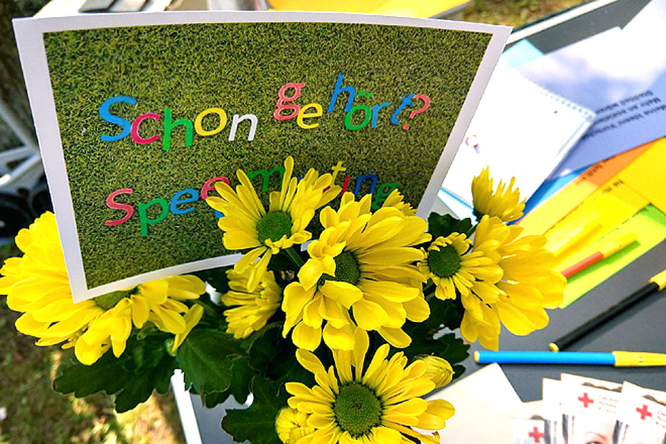 Auffällig, nah am Wochenmarkt Franzsches Feld platziert, hat die Aktion Neugier und Aufmerksamkeit hervorgerufen. In den kurzen („speed“) Treffen („meetings“) wurden Interessierte nicht nur über die Vielfalt der Beratungs- und Unterstützungsangebote informiert. Es gab für alle die Möglichkeit, eigenen Ideen und Wünsche für eine gute und lebendige Nachbarschaft aufzuschreiben und an der Wäscheleine aufzuhängen.