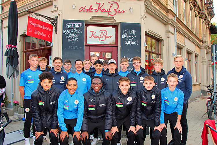 Teamfoto Eintracht-U15 anlässlich des „Löwenmarkts“ vor der DRK-KaufBar. Foto: Finja Scholze / Eintracht Braunschweig