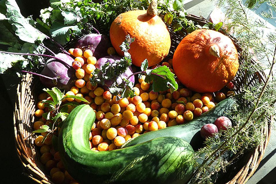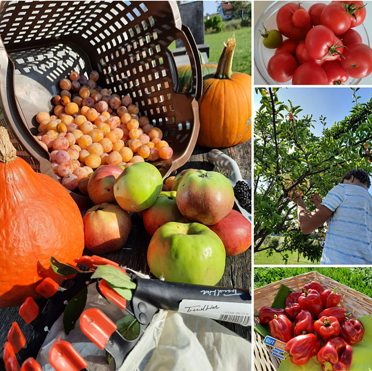 Jedes Mal ein Fest, wenn wir in unserem Garten ernten dürfen – Obst und Gemüse gab es in diesem Jahr reichlich, unter anderem leckere Paprika und Mirabellen, Äpfel, Kürbisse, Tomaten. Natürlich kochen und backen wir mit unserer Ernte immer etwas Leckeres, schließlich muss die ganze Mühe bei der Pflege der Pflanzen, unter anderem in unseren Hochbeeten, belohnt werden. Unser Ernte-Dank ist dann, wenn die Früchte reif sind, nicht wenn der Kalender es sagt. Wir freuen uns über die Ernte und sind voll „GUT DRAUF“.