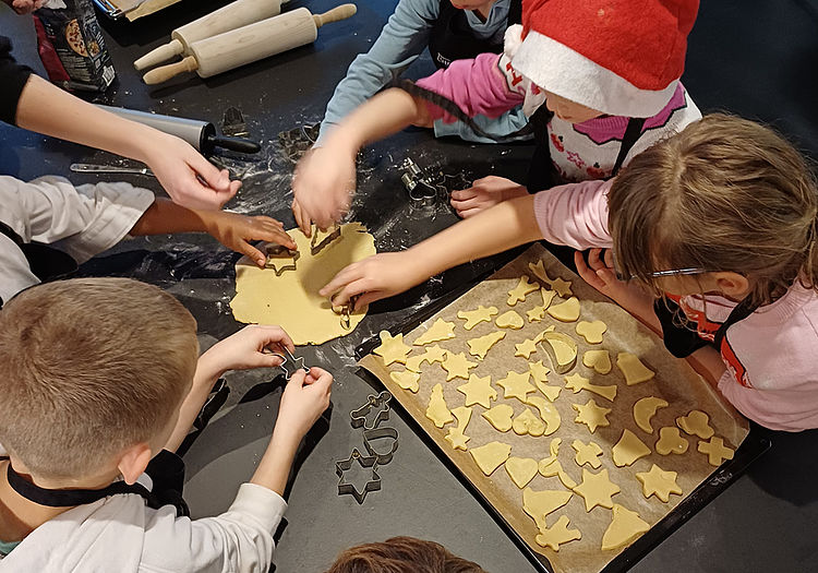 Fünf Tage später, am 8. Dezember, war es wieder Zeit für die Weihnachtsbäckerei und unser Juze verwandelte sich einmal mehr in eine kleine Backstube. Viele kleine und große Bäcker stachen fleißig Sterne, Herzen und Glocken aus, und es duftete nach frisch gebackenen Plätzchen. Mit großem Spaß und Mehl an den Fingern entstanden bunte Kunstwerke. Zwischendurch wurde natürlich auch ein bisschen genascht. Auch für die notwendige Unterstützung war gesorgt: Wir bedanken uns bei den Auszubildenden Ian und Torben von der Perschmann Gruppe für ihr Engagement sowie bei der Bäckerei Claus aus Isenbüttel, die uns erneut mit einer großzügigen Teigspende bedachte.