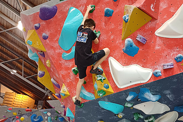 Bouldern und Klettern stehen bei Kindern und Jugendlichen hoch im Kurs. An einem Freitagnachmittag im Februar 2024 haben wir einen Halbtagesausflug in die Fliegerhalle am Westbahnhof unternommen, mit öffentlichen Verkehrsmitteln von Wenden aus, was schon immer ein Abenteuer für sich ist.