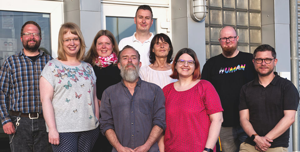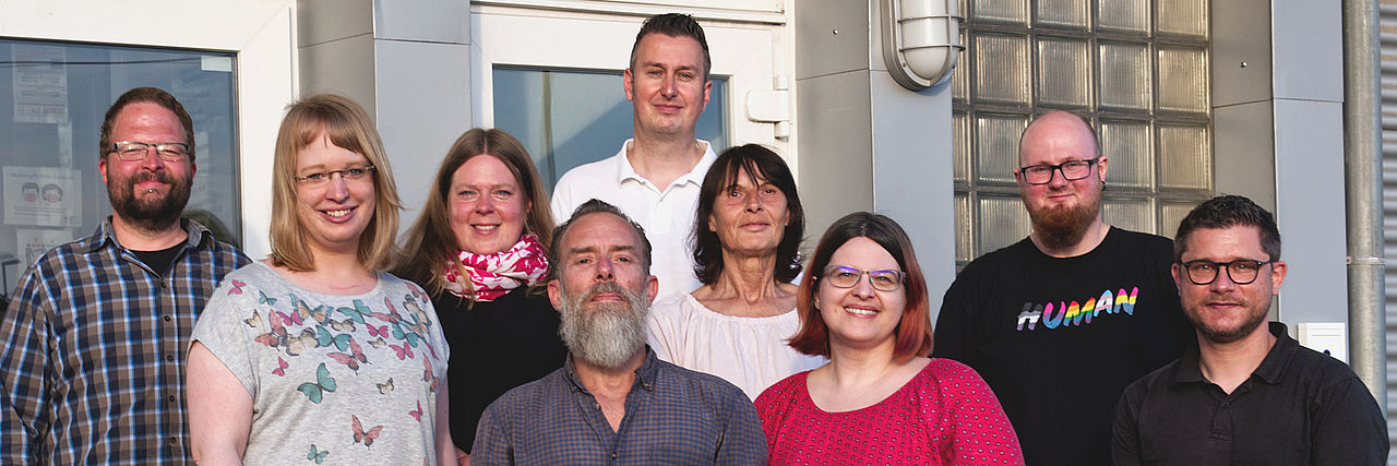 Auf dem Gruppenbild stehen von links nach rechts: Stefan Sauer (Schuldnerberatung), Vanessa Koberstein (Kinder & Jugend), Nina Krüger (Rettungsdienst), Chris Goodpaster (inzwischen ausgeschieden), Thomas Rackow (Stellv. Vorsitzender; Kinder & Jugend), Barbara Piefke (Rettungsdienst), Katrin Güldenpfennig (Kinder & Jugend), Wilhelm Kerkhoff (Kinder & Jugend), Sebastian Sielaff (Vorsitzender, Rettungsdienst).