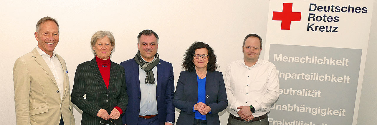 Das geschäftsführende Präsidium des DRK-Kreisverbands Braunschweig-Salzgitter e.V. mit dem Vorsitzenden des Präsidiums, Dr. Christos Pantazis (Mitte), den Stellvertretenden Vorsitzenden (von links) Erik Wilhelmus und Andrea Wiencke sowie Gabriele Heinen-Kljajic (Zweite von rechts) und Schatzmeister Oliver Discher (rechts).