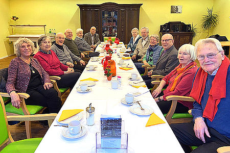 Wann gibt es Frühstück, wie ist ein Seniorenheim organisiert, welche Freizeitaktivitäten werden angeboten? Ein privater Freundeskreis erhielt jetzt im DRK-Seniorenheim Steinbrecherstraße eine Führung – und traf sich zuerst einmal im großen Seniorentreff des Hauses, um eine Tasse Kaffee und ein Stück Kuchen zu genießen.