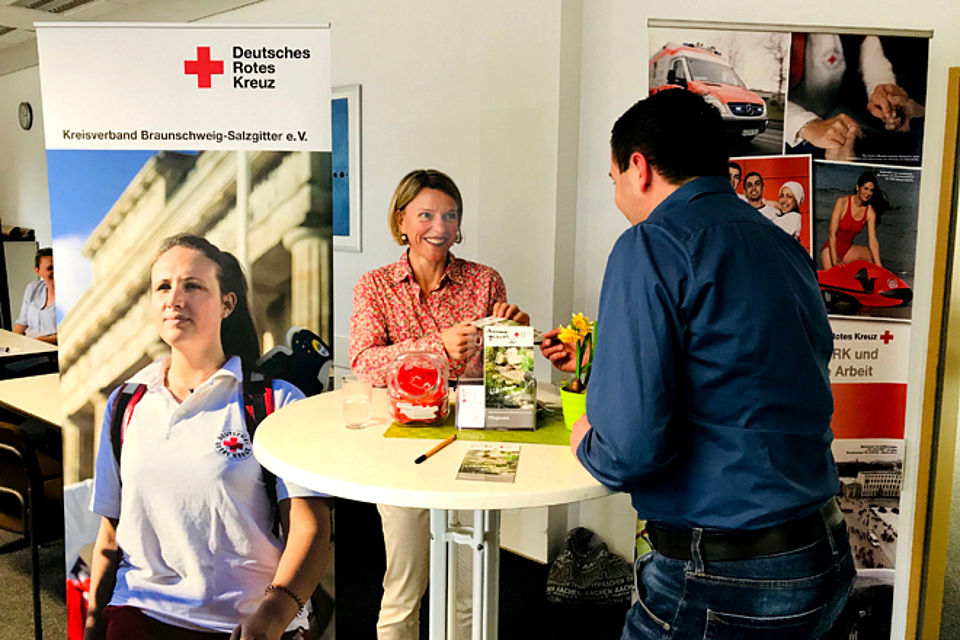 Ansprechpartner für die Besucher war unter anderem Anne-Bianca Büchner, Leiterin des DRK-Seniorenheims Steinbrecherstraße in Braunschweig. Zur DRK Braunschweig-Salzgitter Pflege- und Betreuung gGmbH gehören neben dem Seniorenheim auch die Tagespflegeeinrichtung in Salzgitter-Gebhardshagen sowie die Sozialstationen in Braunschweig-Weststadt und Salzgitter-Lebenstedt.