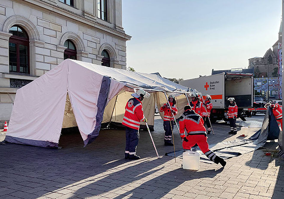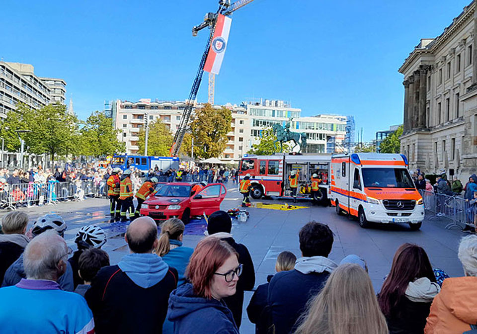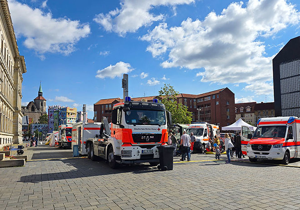 Unser engagiertes Team des DRK-Kreisverbands Braunschweig-Salzgitter e.V. präsentierte sich auf der „Themeninsel Rettungsdienst“ und stellte dabei beeindruckende Einsatzfahrzeuge sowie modernste Technik vor. Unsere hauptamtlichen Rettungskräfte – allesamt erfahrene Rettungssanitäter, einige kurz vor dem Abschluss zum Notfallsanitäter – präsentierten unter anderem einen Rettungstransportwagen (RTW). Unsere Ehrenamtlichen aus den DRK-Bereitschaften Braunschweig und Salzgitter zeigten zudem verschiedene Ausrüstungen, darunter ein Betreuungszelt als Teil eines Behandlungsplatzes. Mit spannenden Live-Demonstrationen erhielten die Besucher faszinierende Einblicke in die vielseitige Arbeit des DRK im Rettungsdienst sowie im Katastrophen- und Bevölkerungsschutz.