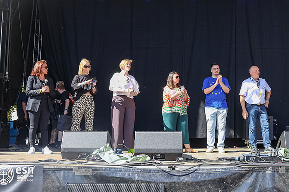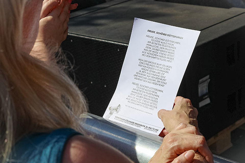 Auch bei der Kundgebung auf dem Schlossplatz am Sonntag waren einige unserer Mitarbeiter und Mitarbeiterinnen vor Ort. Frau Kumpis wurde in einer Interview-Runde auf der Bühne gefragt: „Wie leben Sie Demokratie im Verein?“. Ihre Antwort lautete: „Bei uns im Verein sind alle Menschen willkommen und können Mitglied werden, die unser Leitbild und unsere Werte mit dem roten Kreuz oder roten Löwen auf der Brust tragen wollen – das heißt, wir leben demokratische Prozesse im Verein.“ Und ob im Rahmen des Deutschen Roten Kreuzes oder im Sport: alle zusammen und nur gemeinsam – nur so funktioniert Demokratie. Mehr als 10.000 Menschen aus der Region haben durch ihre Anwesenheit und ihr Engagement eindrucksvoll gezeigt, wie stark eine Gemeinschaft sein kann. Neben inspirierenden Reden aus unterschiedlichsten Bereichen erwartete die Besucherinnen und Besucher ein abwechslungsreiches musikalisches Programm, das mit einem mitreißenden Auftritt von Tim Bendzko den krönenden Abschluss bildete.