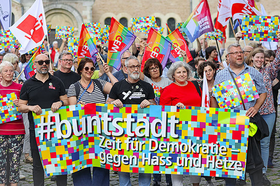 Unser DRK-Kreisverband in Braunschweig und Salzgitter repräsentiert die bunte Vielfalt unserer Gesellschaft und steht für Offenheit und Toleranz. Daher haben wir uns, insbesondere unsere DRK-Vorständin Nicole Kumpis, an beiden Tagen aktiv beteiligt. Auch einige unserer Einrichtungen haben an den Aktionstagen mitgewirkt, sei es durch das Aufhängen unseres DRK-Logos im Buntstadt-Design oder die Teilnahme an den Kundgebungen. Sogar mit den Kindern in der Schulkindbetreuung an der Grundschule Mascherode wurde über das Thema Demokratie gesprochen. Denn auch unsere Kleinsten wissen genau, was Demokratie und Vielfalt bedeuten.
