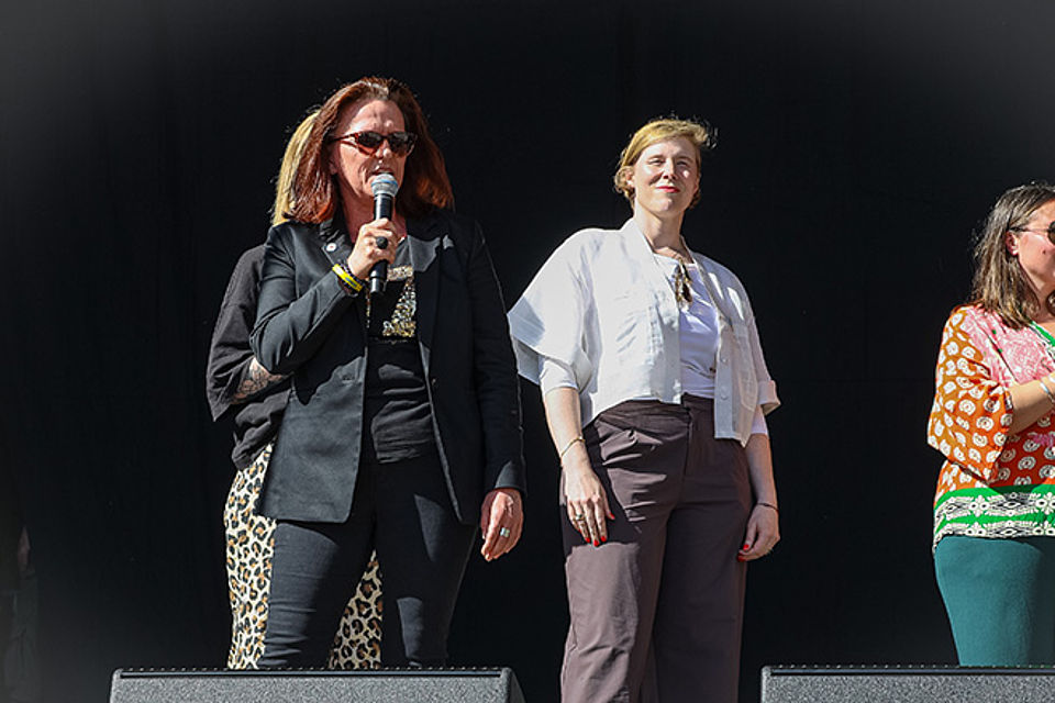 Am Aktionstag zum 75. Jahrestag des Grundgesetzes gab es ein vielfältiges Bild an Beteiligten. Etwa 60 Betriebe, Verbände und Institutionen waren am vergangenen Donnerstag auf dem Burgplatz vertreten – von kleinen Betrieben bis hin zu großen Industrieunternehmen. Die Bedeutung des Grundgesetzes wurde durch eine Vielzahl an Redebeiträgen hervorgehoben, unter anderem vom Oberbürgermeister Thorsten Kornblum, Lars Alt (Geschäftsführer Arbeitgeberverband Region Braunschweig) und unserer DRK-Vorständin Nicole Kumpis. Frau Kumpis betonte: „Unsere Demokratie geht uns alle an – in der Zivilgesellschaft, in der Politik, in der Wirtschaft, aber eben auch im Fußball und im Sport. Nicht nur in meinem Hauptamt beim Deutschen Roten Kreuz geht es täglich um Mitmenschlichkeit und Zusammenhalt, sondern auch bei unserer Eintracht. Unsere Demokratie zu stärken, bedeutet, dass wir alle zusammenhalten.“