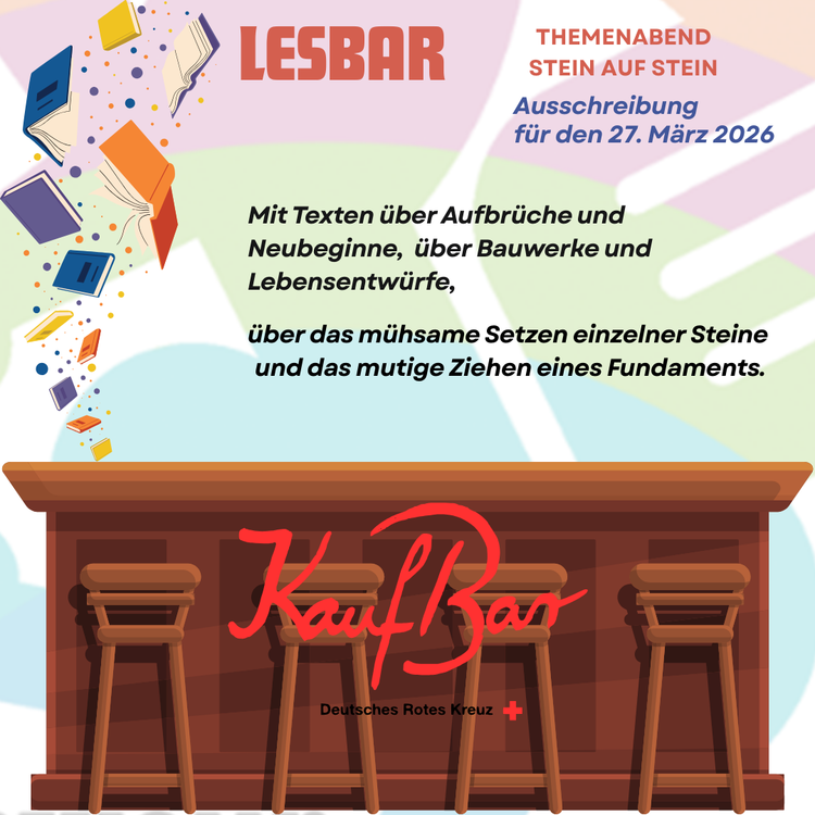 Im März richten wir den Blick auf das, was entsteht, mit Texten über Aufbrüche und Neubeginne, über das mühsame Setzen einzelner Steine und das mutige Ziehen eines Fundaments, über das Errichten und das Erneuern, im Äußeren wie im Inneren, im Sichtbaren wie im Unsichtbaren. Ihr könnt dabei sein, wenn Autor*innen aus der Region Lyrisches, Prosaisches, Dramatisches und Experimentelles – manche Texte sogar zum ersten Mal – vortragen. Wir freuen uns auf Texte, die das Gemeinsame sichtbar machen – leise oder laut, spekulativ oder zärtlich, poetisch oder politisch. Kontakt: literatur(at)drk-kaufbar(dot)de Oder kontaktiert uns via Instagram: @drkkaufbar