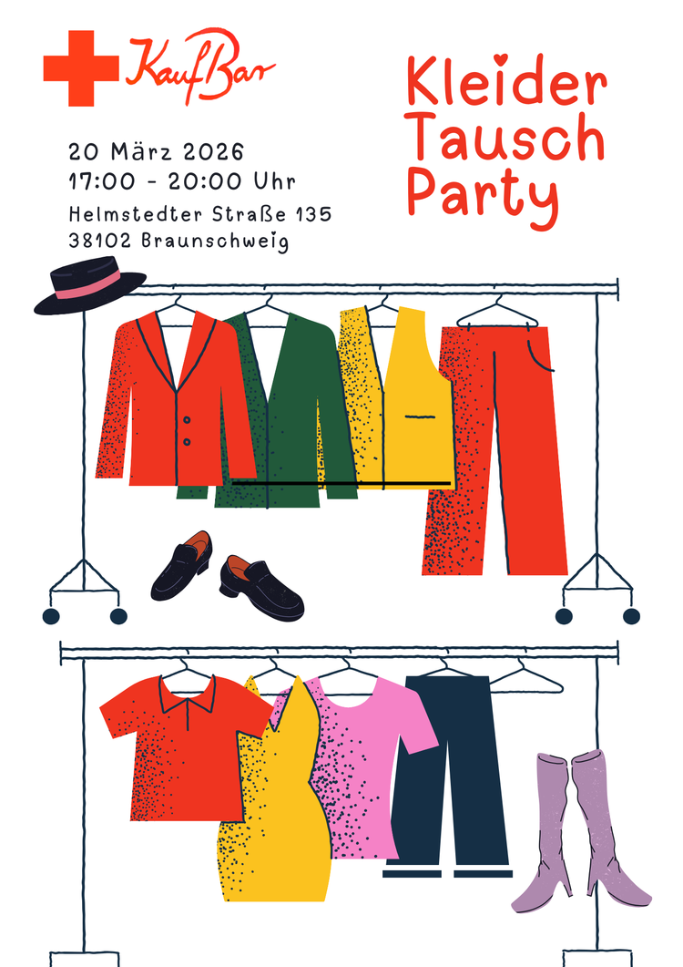 Habt Ihr auch etwas im Schrank hängen, das Ihr schon lange nicht mehr getragen habt oder einfach nicht mehr sehen könnt, obwohl es eigentlich noch gut erhalten ist? Bei der Kleidertauschparty in der DRK-KaufBar könnt Ihr es loswerden und gegen Kleidung von anderen Besuchern eintauschen. Ist doch ein guter Anlass, mal wieder den Kleiderschrank auszusortieren, oder?