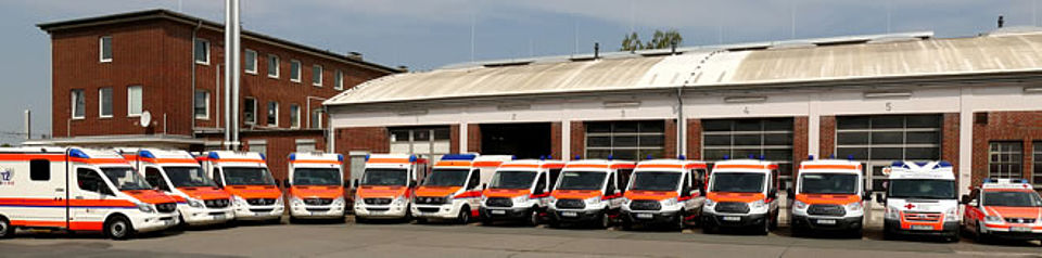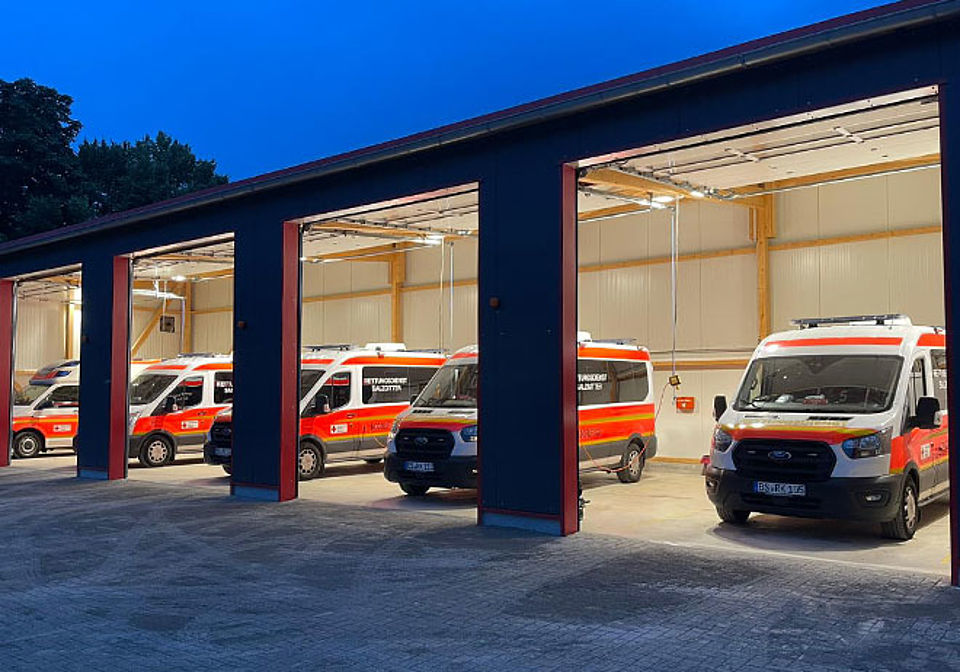 Der Fahrzeugpark in der DRK-Rettungswache am Hauptgüterbahnhof in Braunschweig.