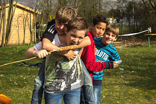 Grillfest mit Kindern und Eltern vor den Sommerferien.