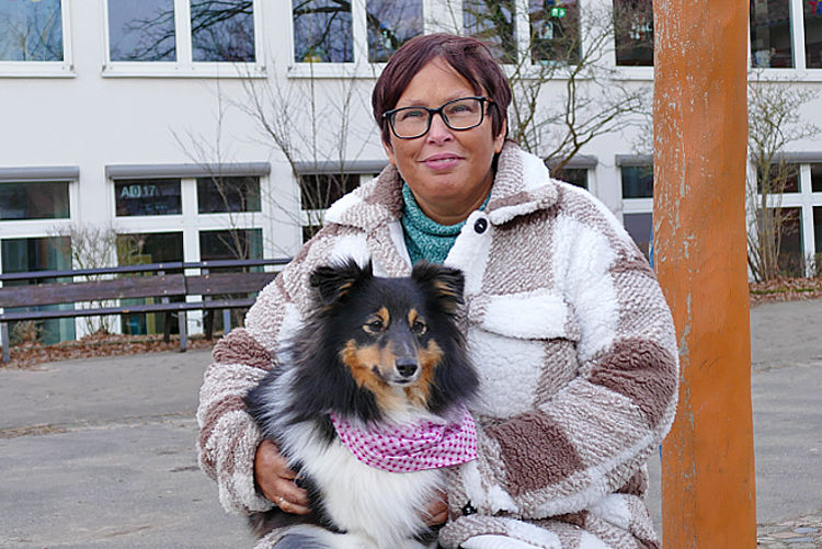 Bettina Weller mit ihrer Sheltie-Hündin Khaleesy arbeitet jetzt für die Schülerganztagsbetreuung in der Grundschule Wenden. Foto: K. Mentasti / DRK BS-SZ