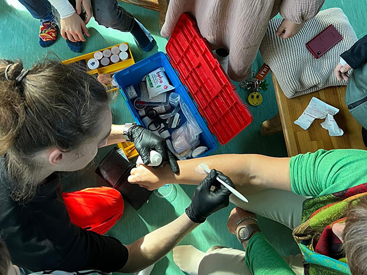In den ersten Tagen der Herbstferien haben wir mit den GTB-Kindern ein kindgerechtes Erste-Hilfe-Training durchgeführt. Fachlich wurden wir dabei unterstützt von Mattis Bohne vom Jugendrotkreuz. Mattis fand durch seine engagierte Art eine gute Balance zwischen Theorie und Praxis um die Kinder für das Thema zu interessieren und zu begeistern. Höhepunkt der Veranstaltung war, dass die beiden pädagogischen Mitarbeiterinnen von Mattis Bohne realistisch als Verletzte geschminkt wurden und die Kinder die Beiden dann mit dem 'Erlernten' als Ersthelfer fachkundig versorgt haben. Alle hatten einen spannenden Tag und waren sehr motiviert und wissbegierig!