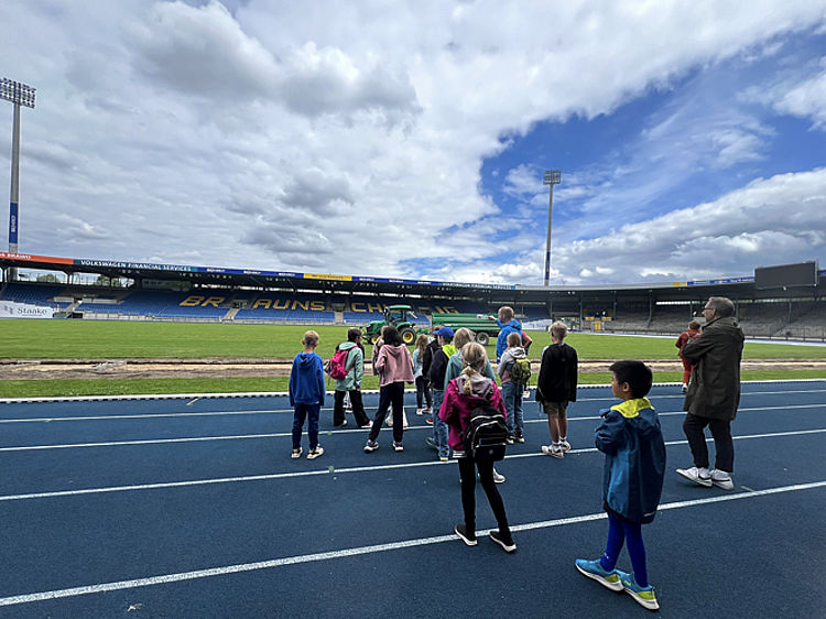 Die Schülerganztagsbetreuung besucht das Eintracht-Stadion