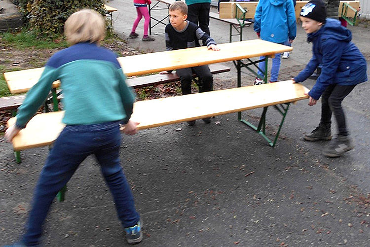 Und wieder legten sich die Kinder mächtig ins Zeug: Sie planten mit uns, bereiteten ihren eigenen Verkaufsstand eigenständig vor, bastelten voller Eifer und verkauften dann geschäftstüchtig ihre eigenen Werke – frei nach dem Motto: „Sie zahlen das, was es Ihnen wert ist!“ Auch schon beim Aufbau der Bierzeltgarnituren und beim Dekorieren der Stände waren unsere Kinder wichtige Helfer.