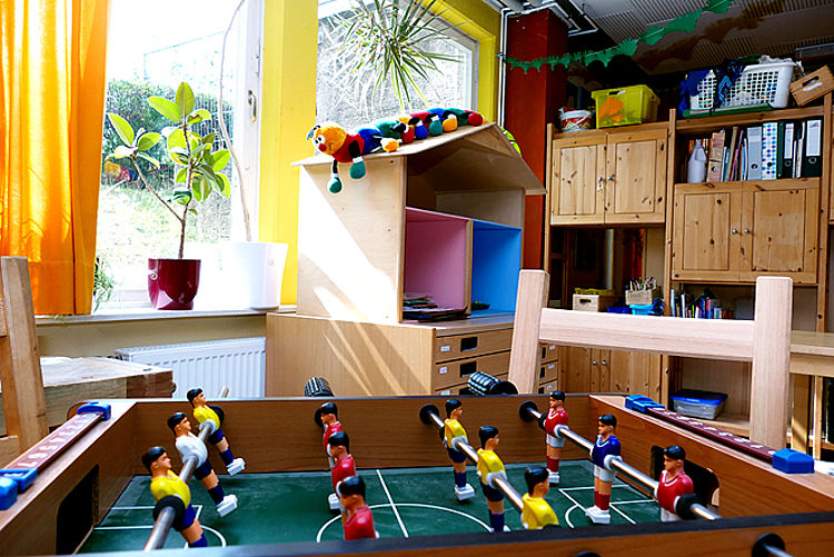 In Kooperation mit der Schule können weitere Räume genutzt werden, wie z.B. Klassenräume für die Hausaufgabenzeit, die Turnhalle, der Computerraum und der Schulhof. Der Schulhof ist großzügig angelegt und bietet mit dem Sportplatz viele Spielmöglichkeiten an der frischen Luft.