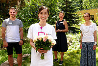 Einen Blumenstrauß, verbunden mit herzlichen Glückwünschen, haben Seniorenheim-Leiterin Anne-Bianca Büchner, Pflegedienstleiter Alexander Helmerding und Praxis-Anleiterin Yvonne Schütz mit großer…